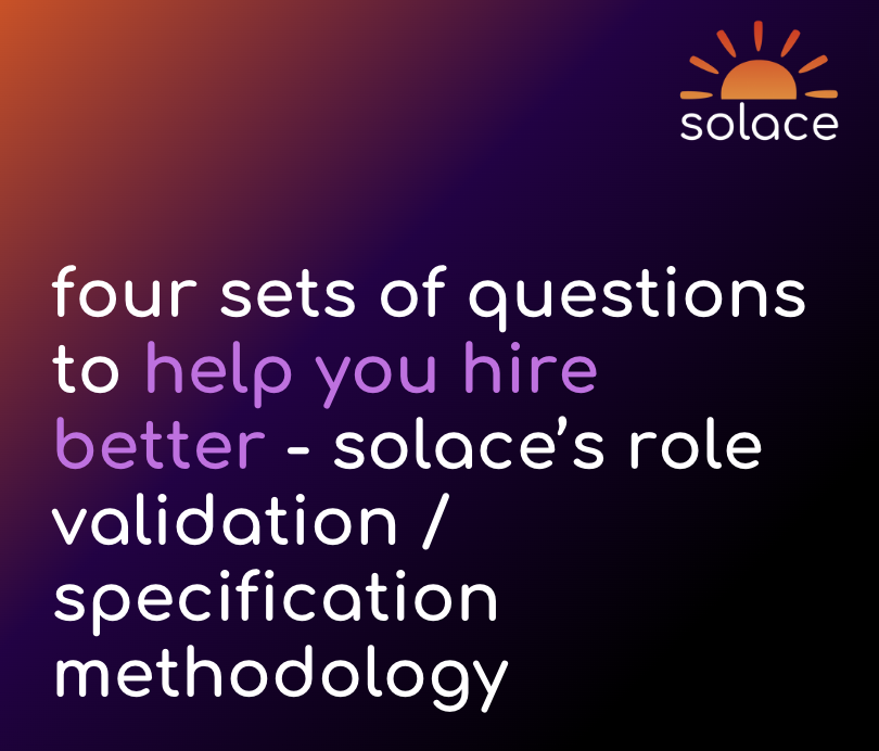 four sets of questions to help you hire better - a breakdown of solace’s role validation / specification methodology.